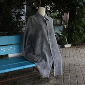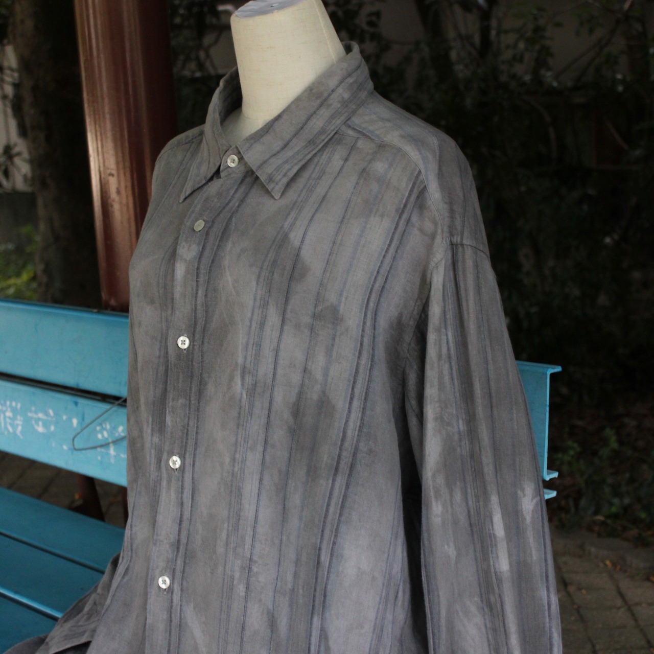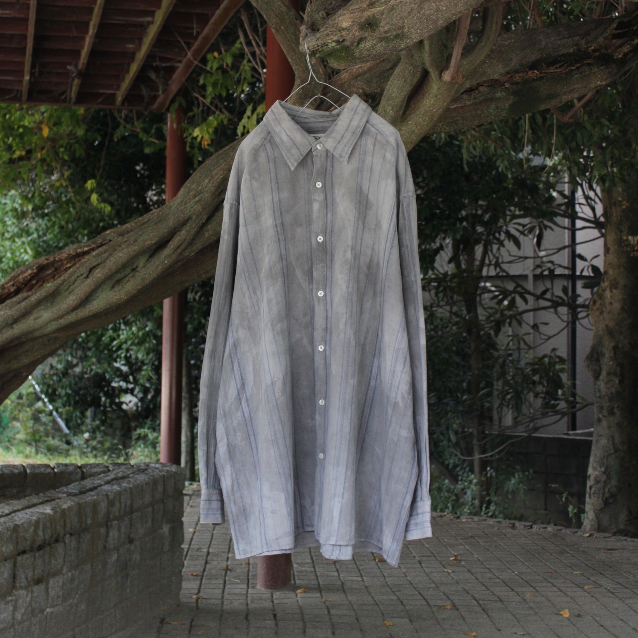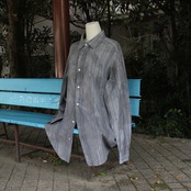 “古きを尊び、新しきを創る”という理念のもと、軽やかな質感の丈の長いストライプシャツに、伝統的な墨染めの技法を施しました。
